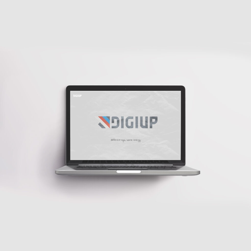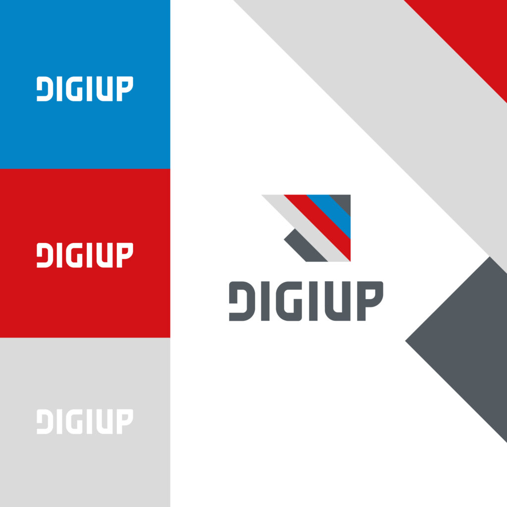 C’eravamo, ma qualcosa ancora non convinceva. Si sa che un logo va progettato in nero perché sia riproducibile e riconoscibile anche a un colore ed è la sfida più difficile, ma qui il nero era un po’ “di troppo”. Visto che è un’Azienda IT che si occupa maggiormente di UX/UI abbiamo applicato uno dei mantra del web design: mai usare il nero, poiché crea troppo contrasto in lettura. Così ecco questo bellissimo grigio neutro, di peso ma non troppo, che accompagnerà il nuovo logo Digiup in tutta la sua Brand Identity.